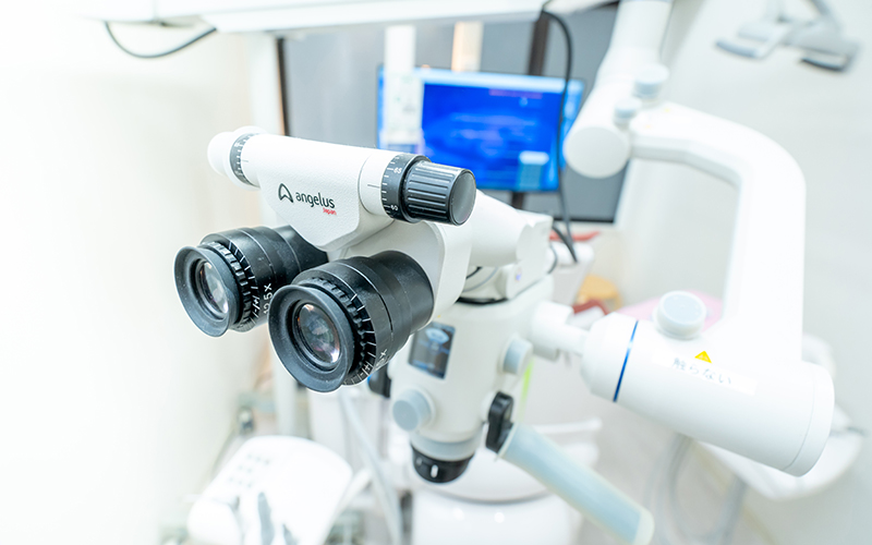 当院では、患者さまに安心して治療を受けていただけるよう、院内設備の充実に努めています。 肉眼では見えない細部まで確認できる「マイクロスコープ」を導入し、より精密な診断と治療を実現。 また、治療前の不安や疑問にも丁寧に向き合えるよう、半個室の診察室を設け、プライバシーにも配慮しています。
