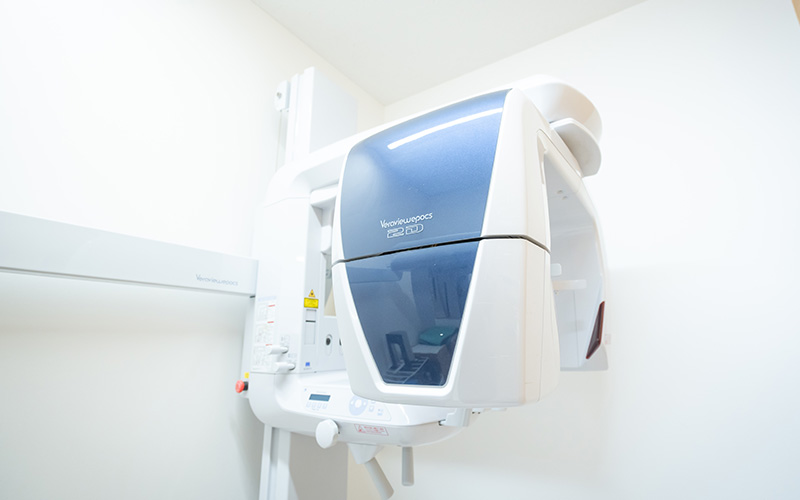 より正確な診断と安全な治療のために、歯科用CTを導入しています。顎の骨の状態や神経の位置などを立体的に把握できるため、インプラントや親知らずの抜歯、根管治療などの際にも、リスクを抑えた的確な処置が可能になります。